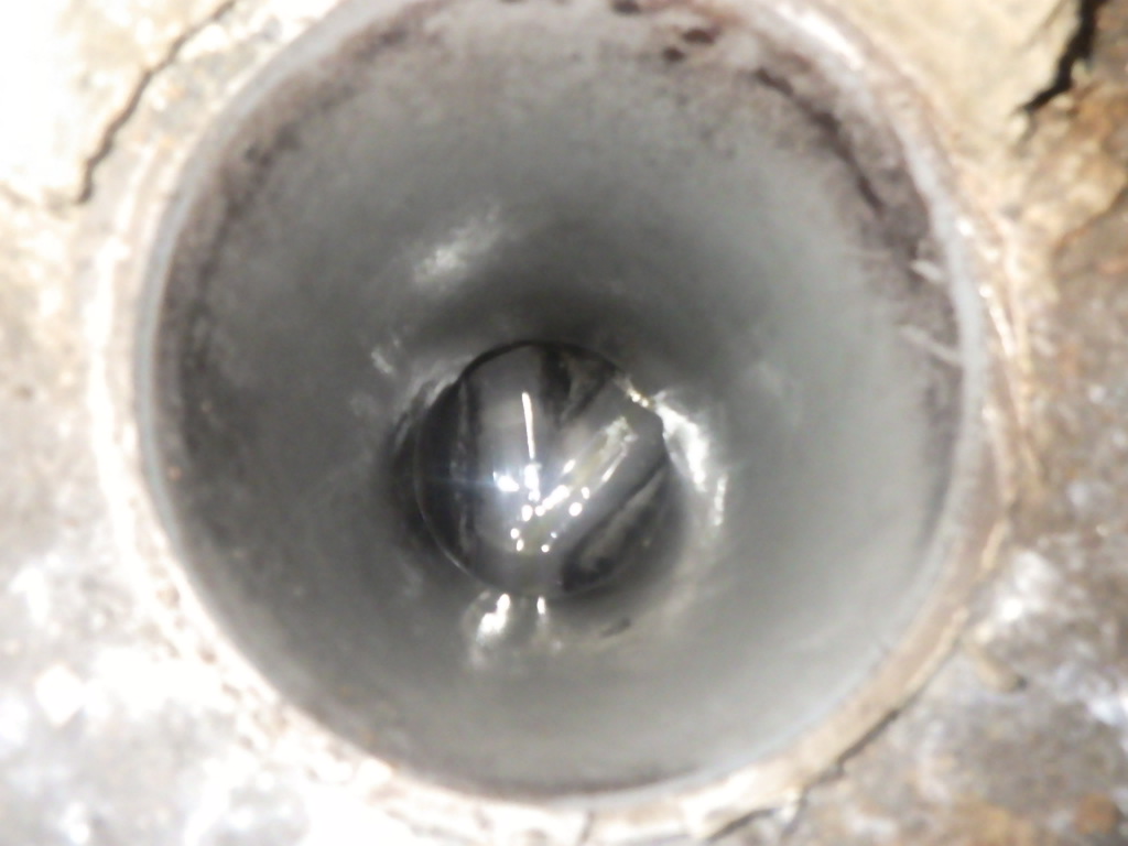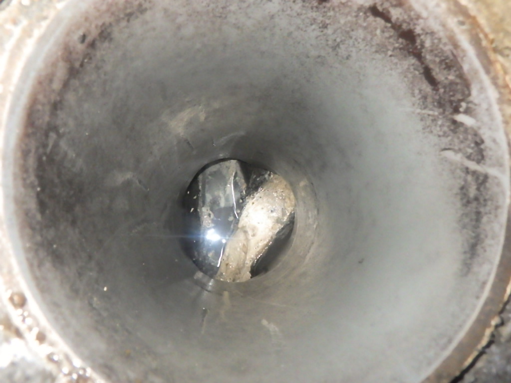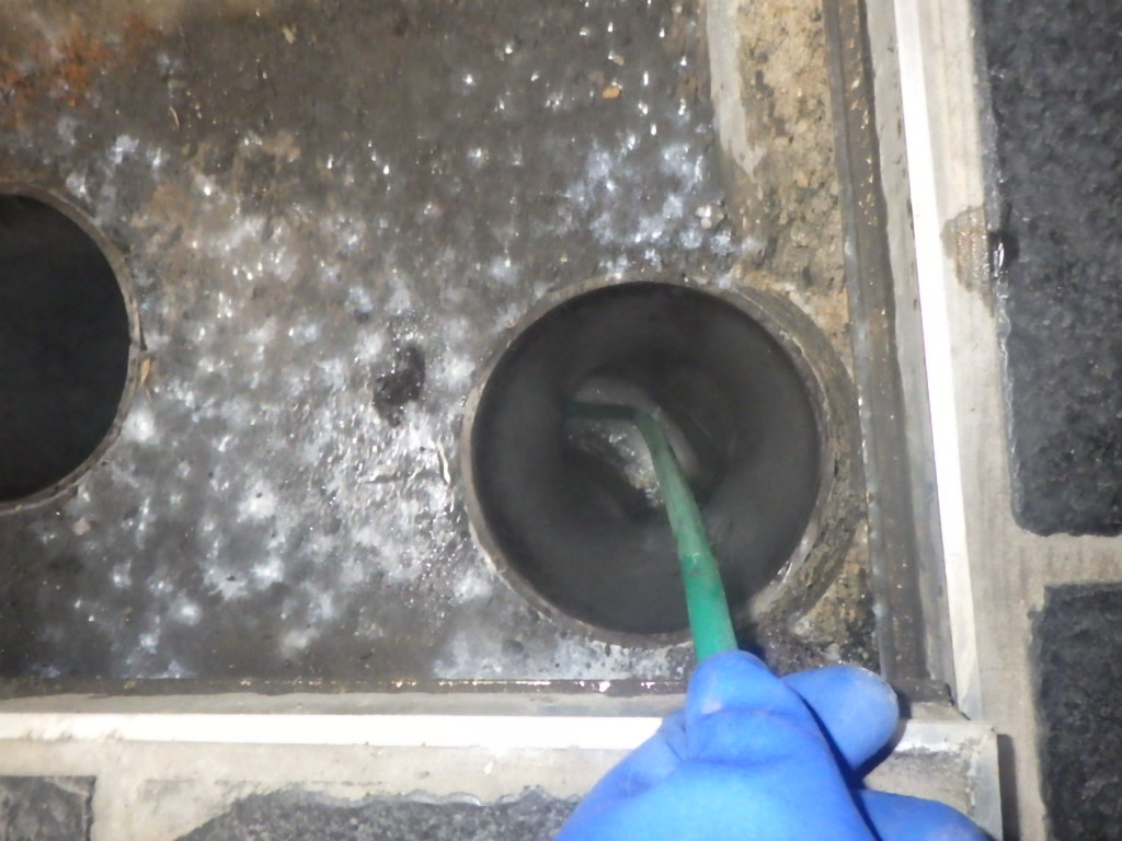排水管内にグリスが付着し流れが悪くなっています。