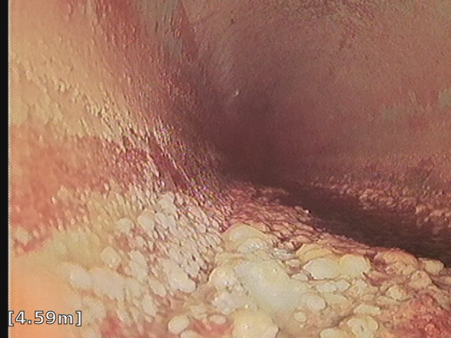 尿石が円を描く様に付着し排管径が閉塞しています。