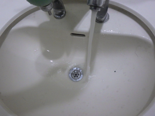 洗面が排水しないとの事で、高圧洗浄にて施工中です。