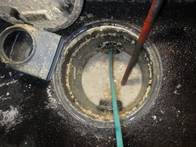 雑排水桝の溢れ。グリスの堆積によるものでした。