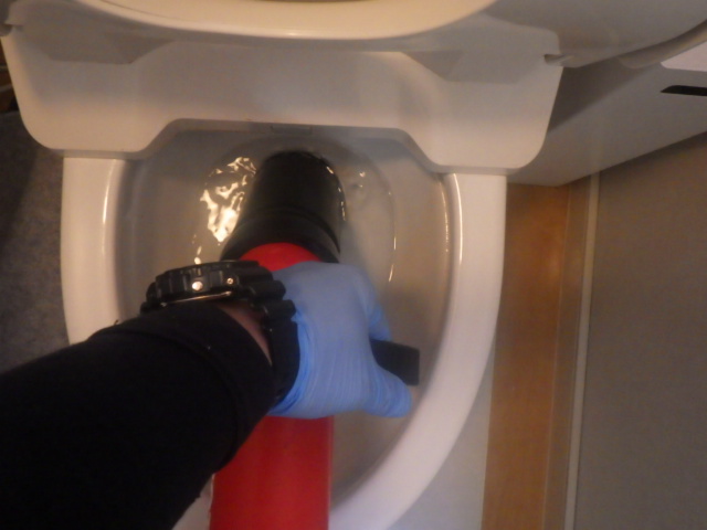 ローポンプを使用し、便器内にある異物を除去していきます。