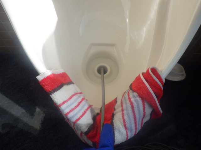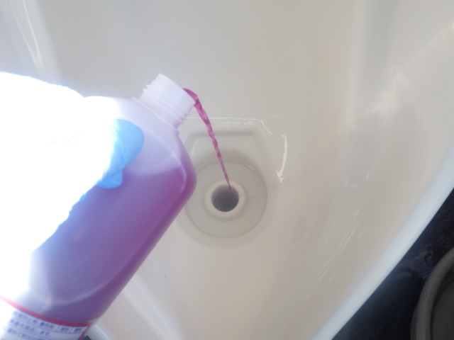 尿石除去剤を使用し、配管内の汚れ・詰りの原因を除去していきます。