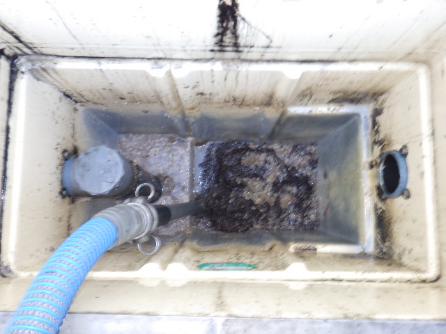 洗剤とブラシで清掃を行い、汚水を吸引します。