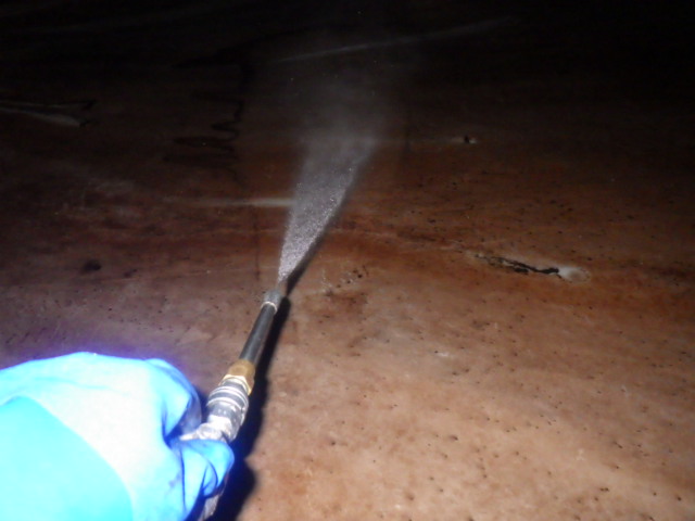槽内を高圧洗浄で綺麗にしていきます。