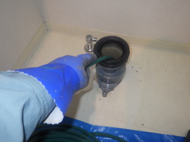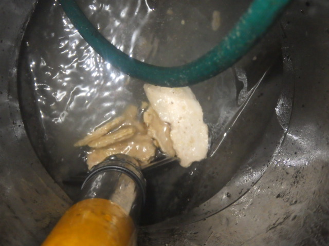 一旦詰りを除去し、再度調査を行うと、トイレの排水管なのに油の塊がびっしりと付着していました。